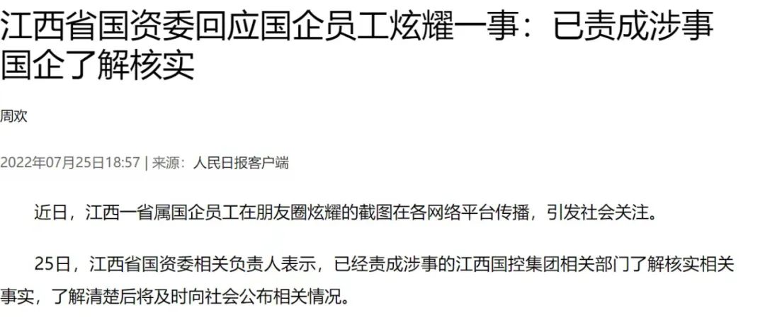 江西省国有资本运营控股集团有限公司回应称:“周劼于2020年3月入职我司,现为我司股权管理部普通员工。”