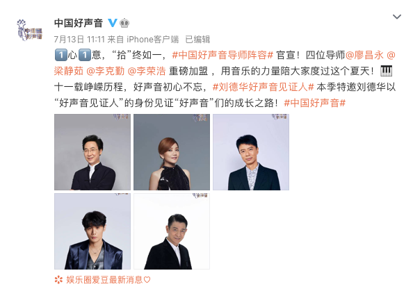 随着新一季《中国好声音》的官宣,相信很多网友都有所关注吧,作为国内热度最高的音乐选秀综艺,每一季都能掀起很高的热度,不单单是因为选手们的亮眼的表现,明星导师阵容也是非常梦幻。