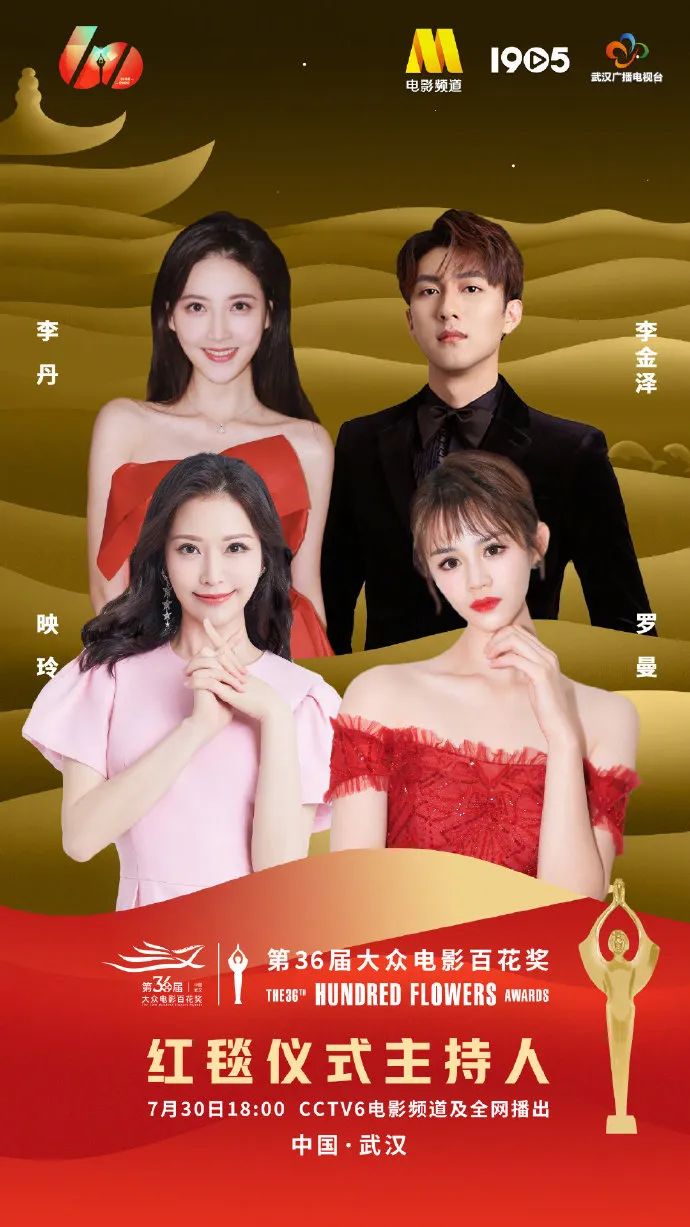 在大众电影百花奖的闭幕式舞台上,电影频道安排了四位新面孔担任活动的主持工作,他们分别是李丹、李金泽、映玲以及罗曼。