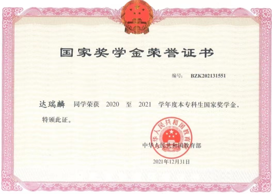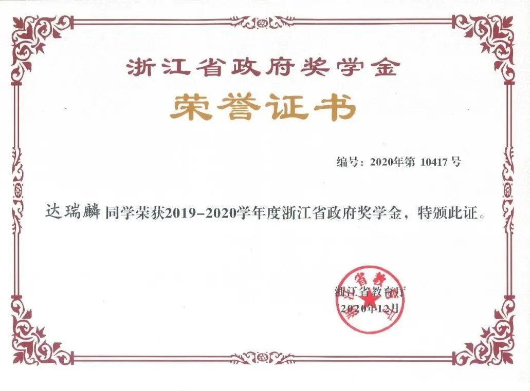他在学校中也获奖颇丰,普通话成功考取一级甲等。曾任全媒体实验创新中心《浙传新闻》主播组长。获得过2020-2021学年国家奖学金和2019-2020学年省政府奖学金,三好学生、一等奖学金、优秀共青团员、社会工作优秀奖等等荣誉也都被他纳入囊中。