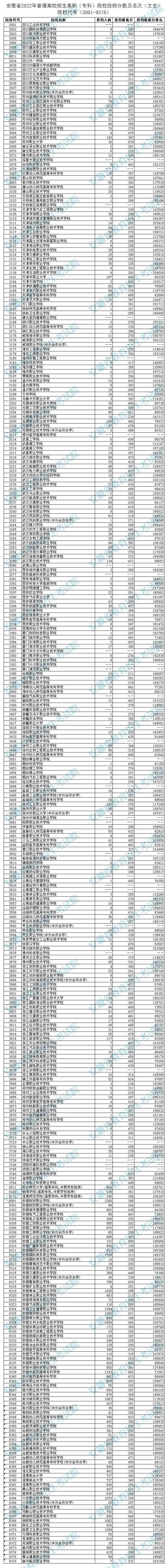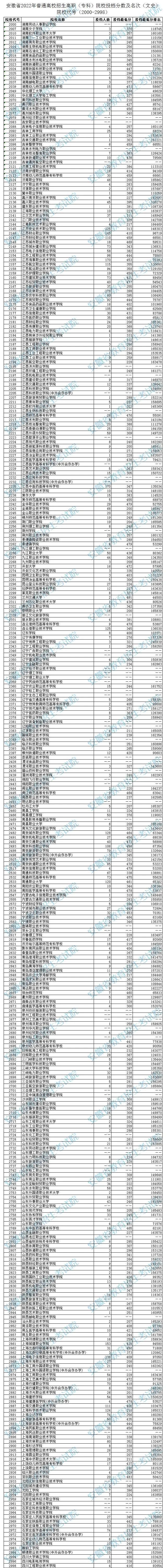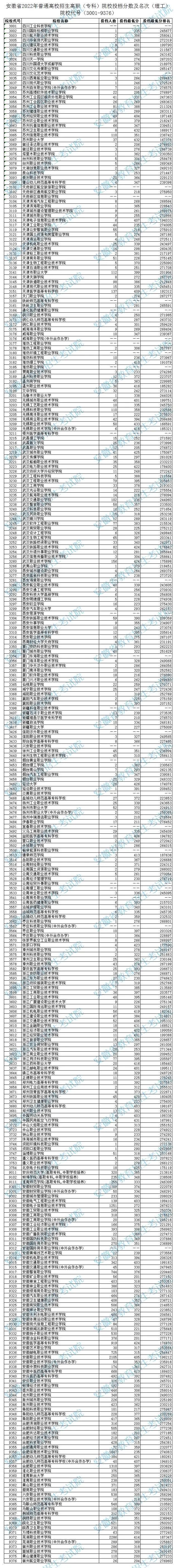 安徽省2022年高职(专科)院校投档分数及名次