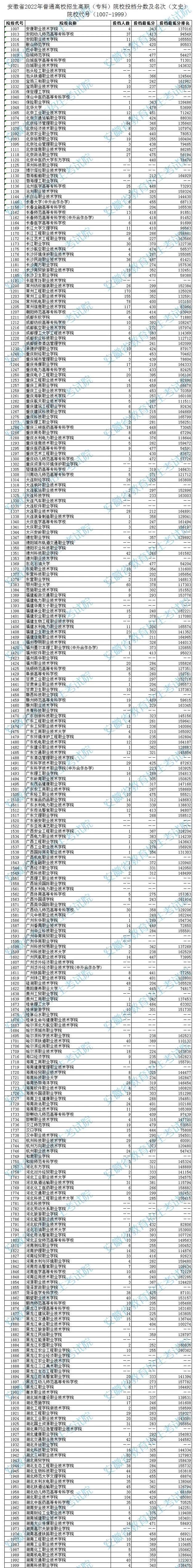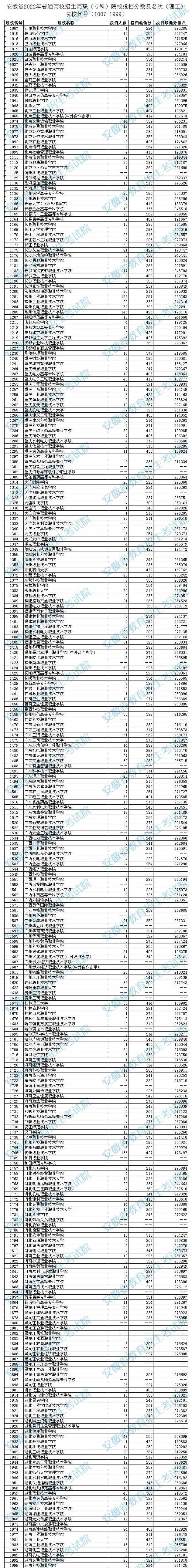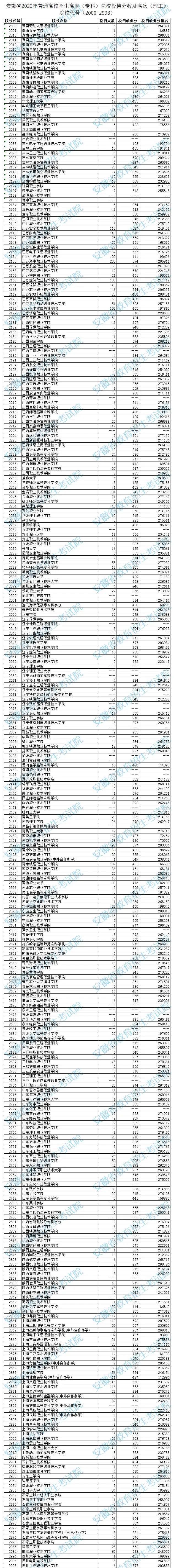 安徽省2022年高职(专科)院校投档分数及名次