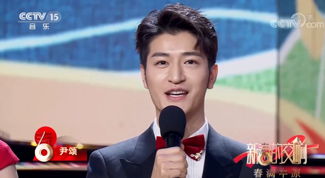 尹颂,中央广播电视总台2019主持人大赛文艺类银奖获得者。2019央视主持人大赛结束后,他不仅主持了2020中央广播电视总台春节联欢晚会,还几乎主持了央视综艺频道2020年大部分的文艺晚会,从年初的春节团拜会、春晚主会场,到七夕晚会、重阳节晚会、国庆音乐会、丰收节晚会、中秋诗会,再到跟随“文化进万家”活动剧组去广西三江、湖南郴州、乌兰浩特、科右中旗等地慰问演出……