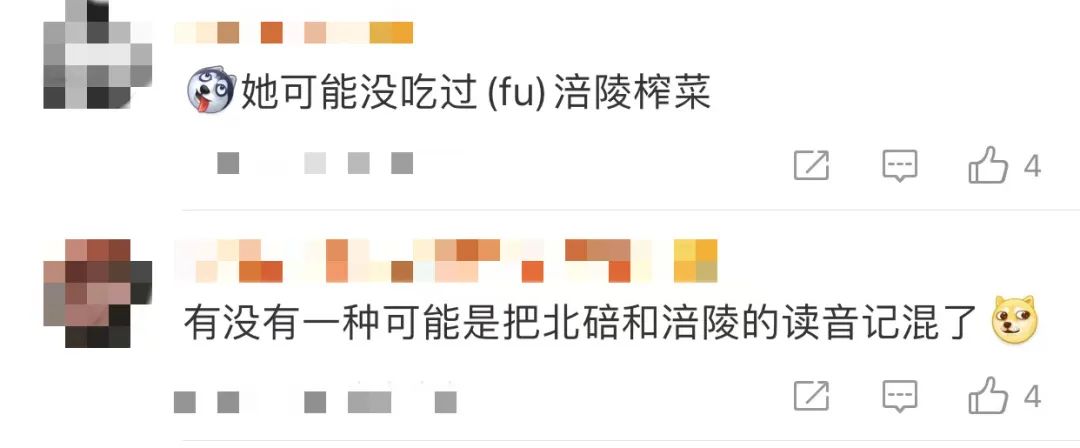 还有网友猜测,主持人是不是把地名「北碚」和「涪陵」中“碚”和“涪”的读音记混了,所以才导致出错。