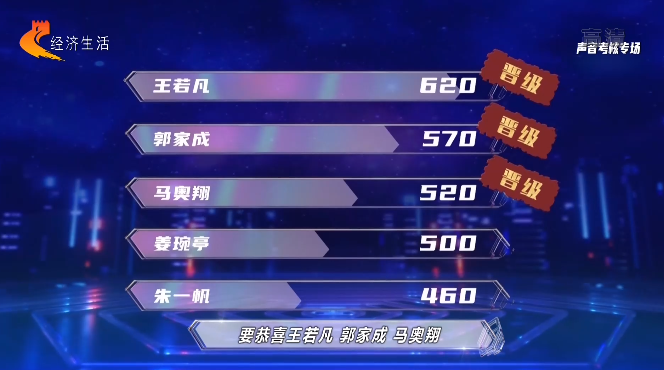 得票低的两组选手进入待定并完成第二轮考核,第二轮考核是选手从考核题目中选择其一完成配音,得票高的三人晋级。