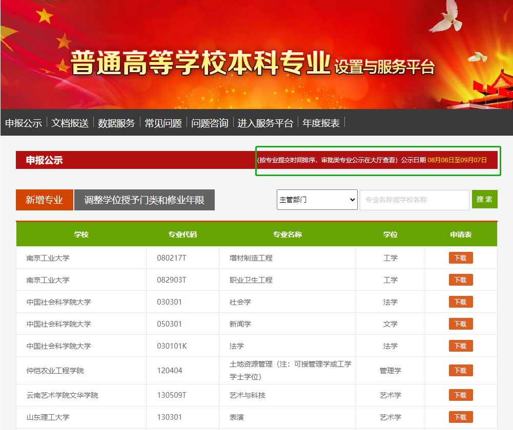 本月教育部公布《2022年度普通高等学校本科专业申报材料公示》(公示期为8月8日-9月7日)。