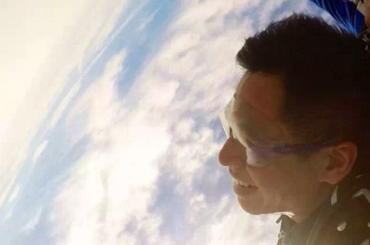 从3000米高的地方跳伞,对于何岩柯来说太难了,他说:“一开始觉得自己还行,可是当有人把你推到机舱旁边,把门打开,冷空气哗地冲进来,全是云看不见地面的时候,腿一下就软了……”害怕、恐惧谁都有,但不同的是:即便如此,何岩柯还是选择了勇敢面对。