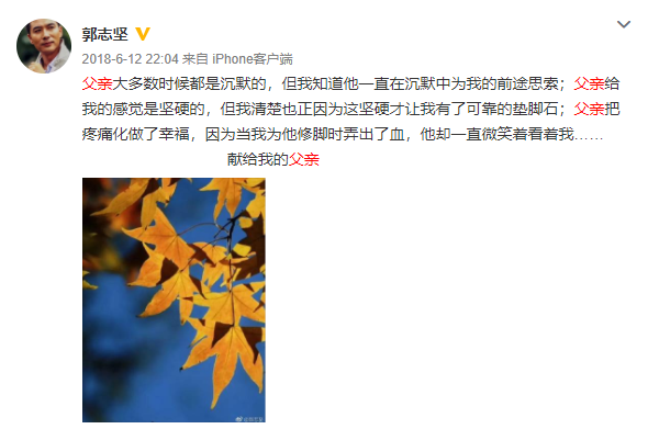 希望郭志坚可以协调好自己的工作和生活,多抽点时间陪伴在家人的身边。