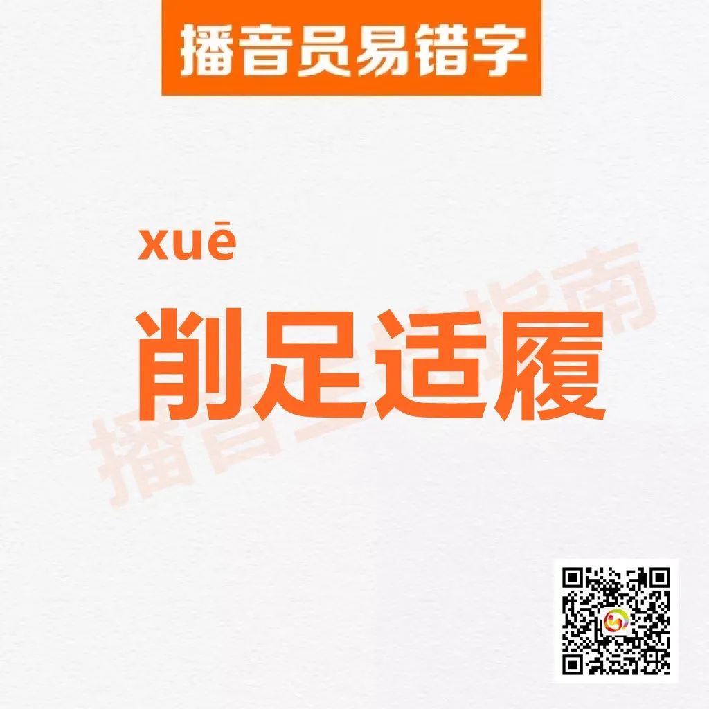 释义:削:用刀切。适:适应,符合。履:鞋子。指鞋小脚大,把脚削去一块去适应鞋子的大小。比喻不合理地迁就现有条件,或不顾具体条件地生搬硬套。也作“削趾适履”。