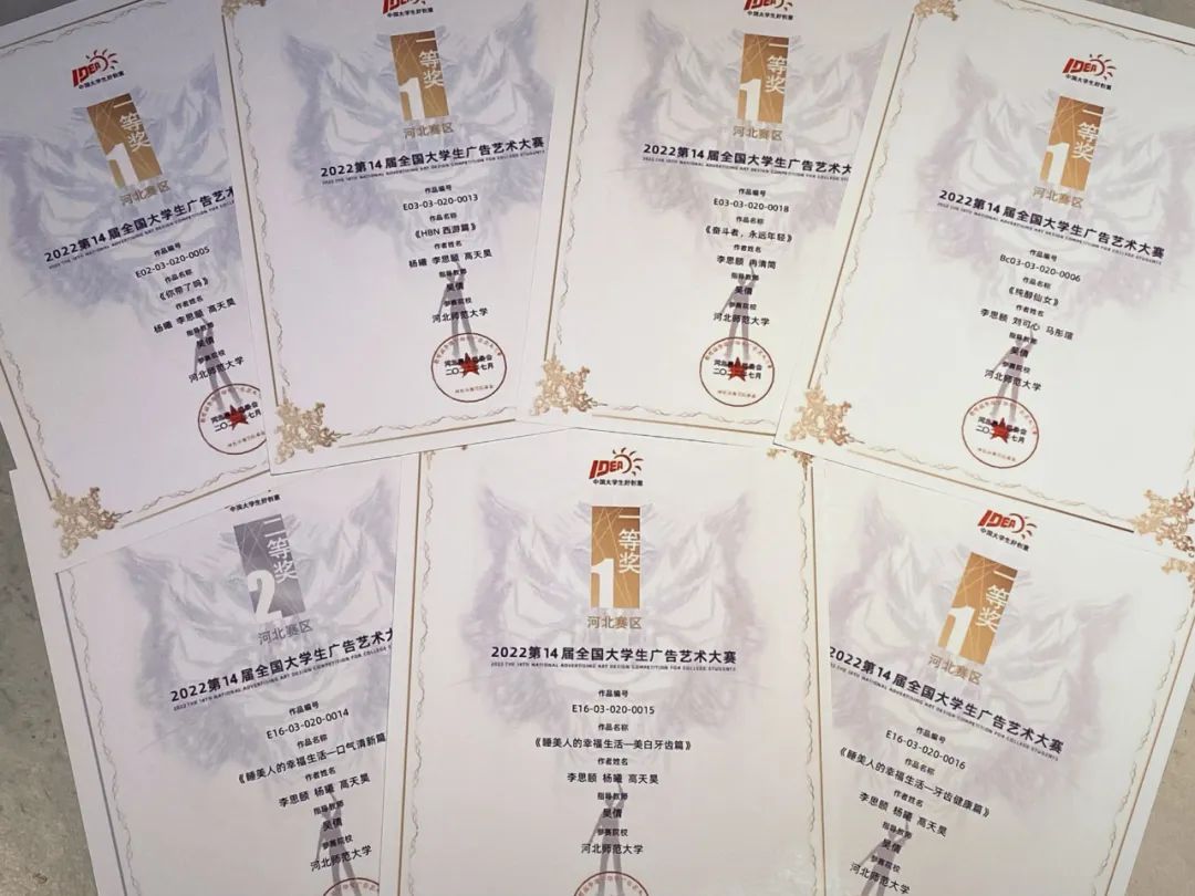 2022年5月,全国大学生广告艺术大赛获全国二等奖,河北省赛区一等奖六项、二等奖一项;
