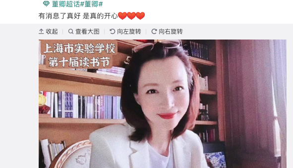 视频为董卿在家里通过录制短视频的形式来为上海市实验学校第十届读书节打call的片子成为了网友们的热议话题。