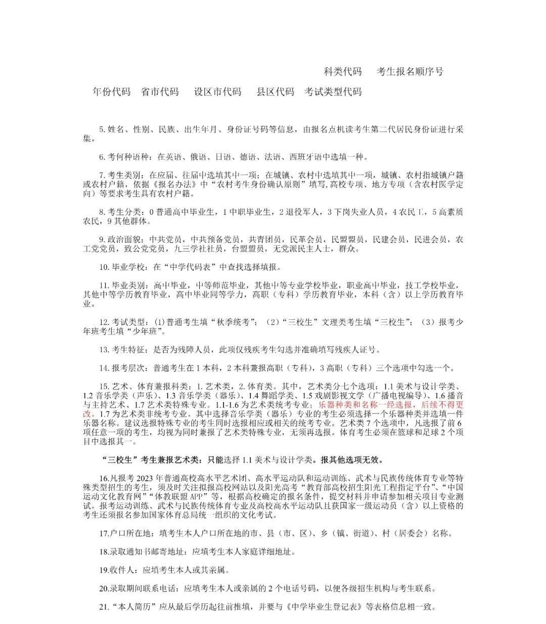 所有报考普通高校招生(包括保送,强基计划,少年班,高水平艺术团、运动队,运动训练、武术与民族传统体育专业单招,高职单招,职教师资单招,残障考生单招,中职技能竞赛获奖免试生等各类形式招生)的考生均须到报名点采集相关信息后再完成网上报名。