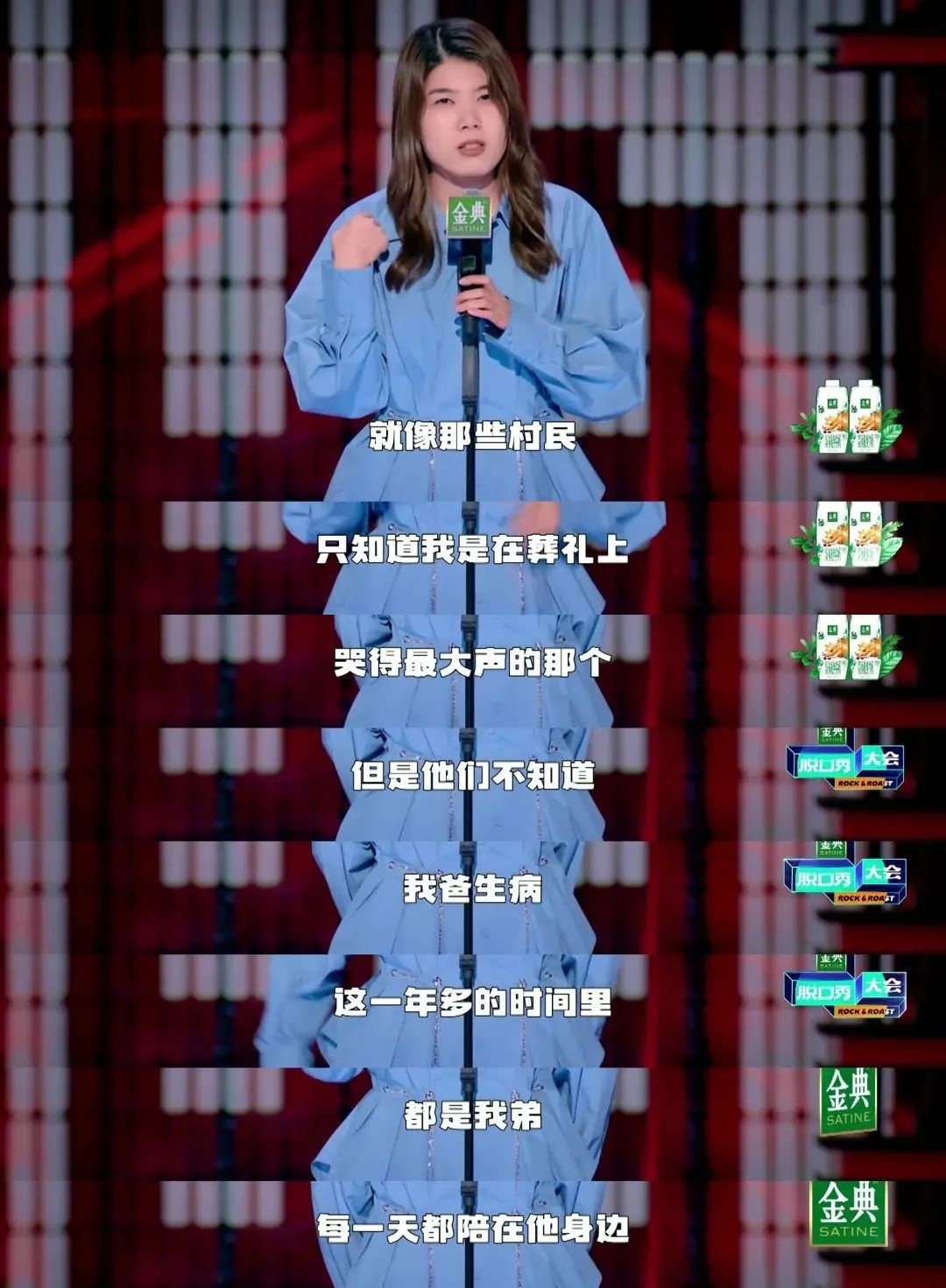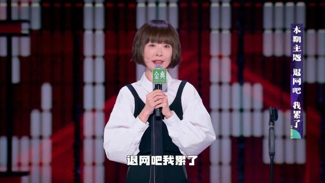 刚好这两期节目有一个主题是“退网吧,我累了”。杨笠就举了个例子,说在村民围观的父亲葬礼上,她一路大哭,弟弟却因为哭不出来,担心背负“不孝子”的名声。