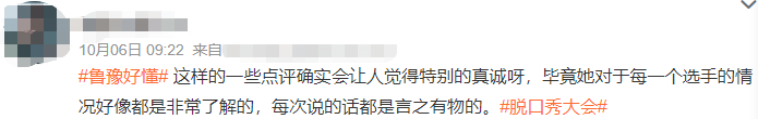 竟然迎来一边倒的好评,观众赞她真的好懂脱口秀,每一次点评都很到位且真诚,并且希望她能常驻领笑员。