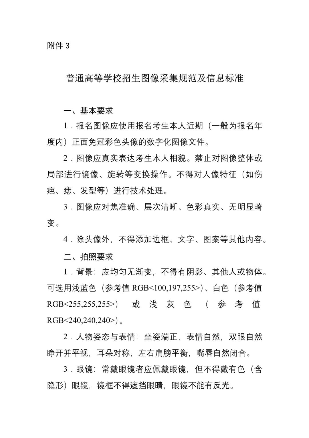 3.普通高等学校招生图像采集规范及信息标准