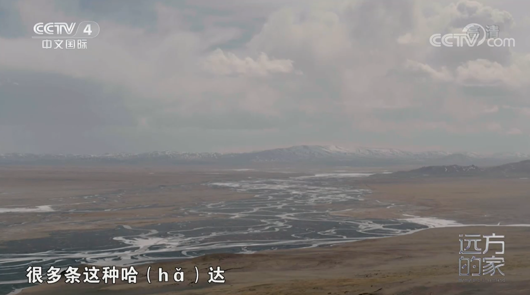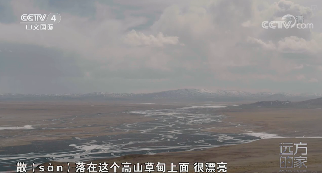 现在这个季节,这些河道还是封冻的,所以我们看上去就像很多条哈达散落在这个高山草甸上面。