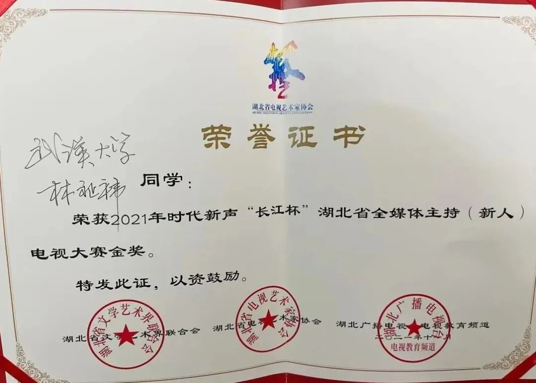在学习的同时,她还积极地参加活动锻炼自己的能力。在大学期间,多次担任武汉大学金秋艺术节开幕式主持人,担任教育部主办《我心中的思政课颁奖典礼》主持人,担任三年一届的武汉大学杰出校友颁奖典礼主持人。她还曾担任央视新闻“云游武大”直播节目主持人,担任人民日报“云赏樱”直播节目主持人,担任央视频CCTV17“云赏樱”节目主持人,参与湖南卫视“午间新闻”节目录制。在不断学习对自身进行输入的同时,通过一系列的活动锻炼自己的输出能力,输入和输出,从来都不是单向阀!