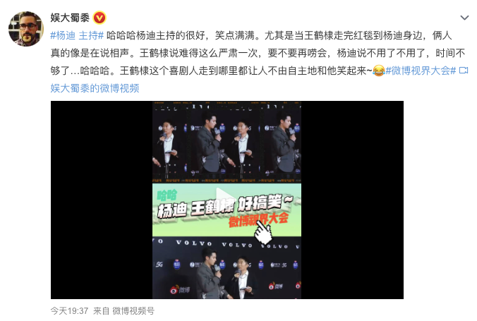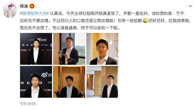 今日#微博视界大会#由杨迪主持,不出意外的杨迪上了热搜。