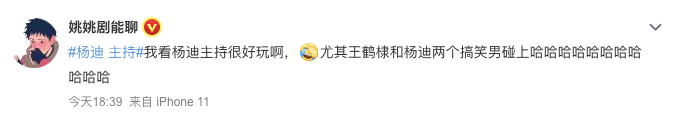 点开微博热搜的词条,有很多大V和粉丝都夸杨迪的主持很棒,也许这些大型的活动是需要这样的主持人来活跃气氛的吧。