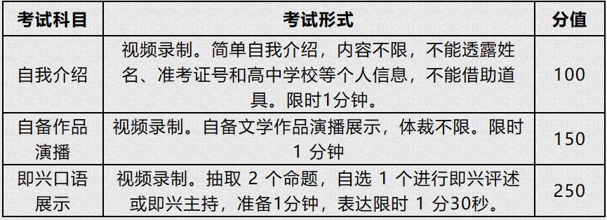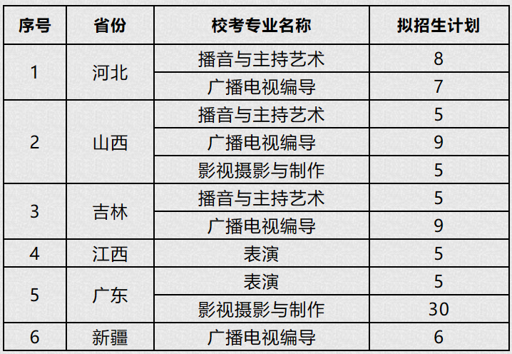 根据教育部做好普通高校艺术类招生工作有关文件精神和工作要求,针对不同专业人才选拔的特点和要求,结合我校实际,经学校研究决定,我校2023年继续在播音与主持艺术、表演、广播电视编导、影视摄影与制作4个专业组织校考,校考采用网络远程考试形式进行,现公告如下: