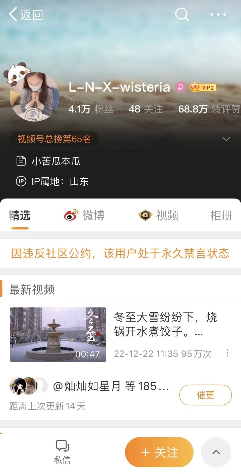 1月4日,刘鑫个人微博显示“因违反社区公约”,账号被永久禁言。