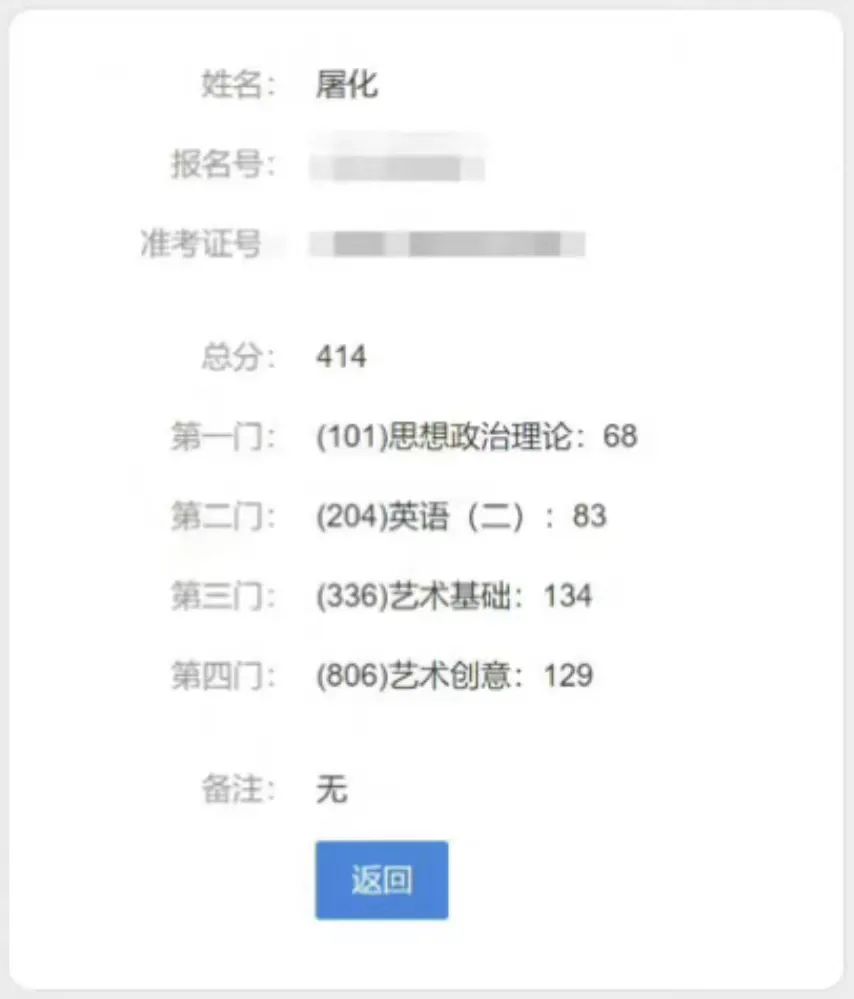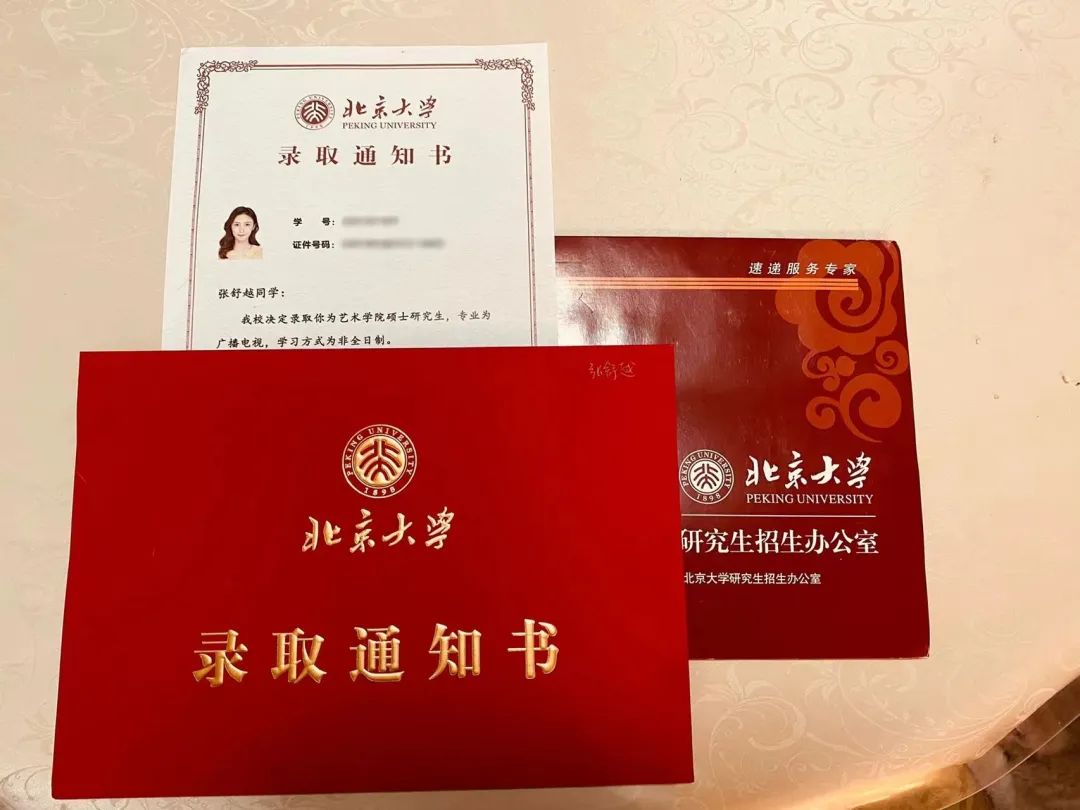 去年张舒越以416分的高分成功考上了北京大学的MFA(艺术硕士研究生),成绩排名第三。