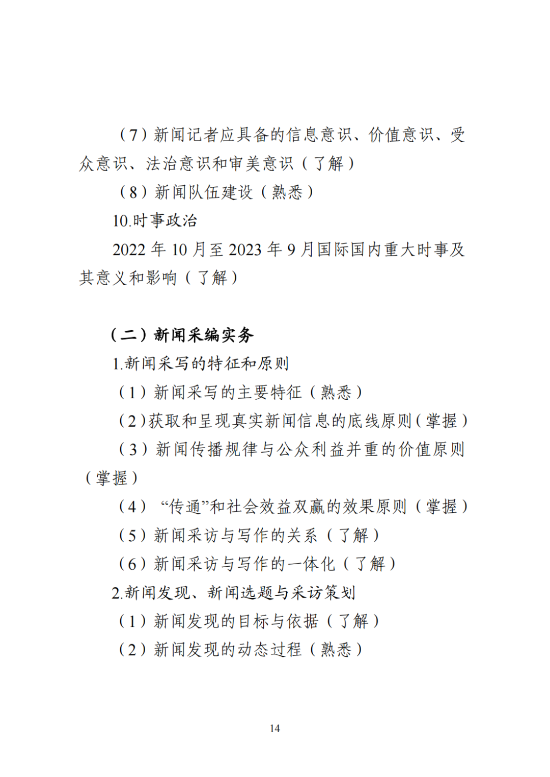 以下为《2023年全国新闻记者职业资格考试大纲》原文 ↓↓↓