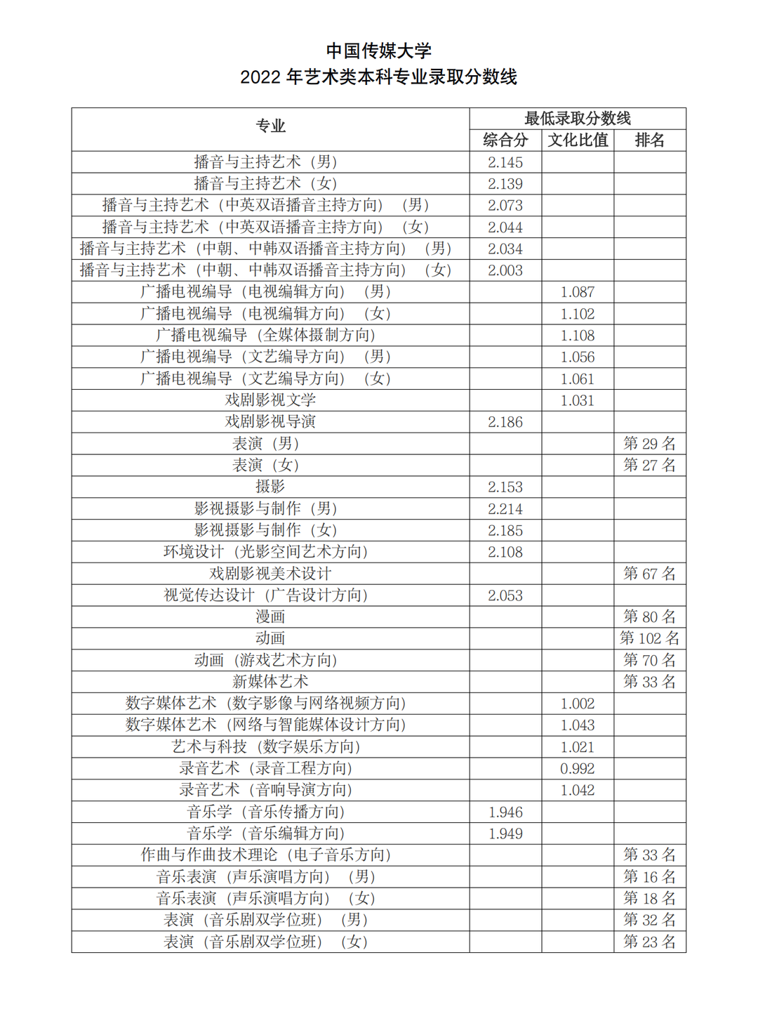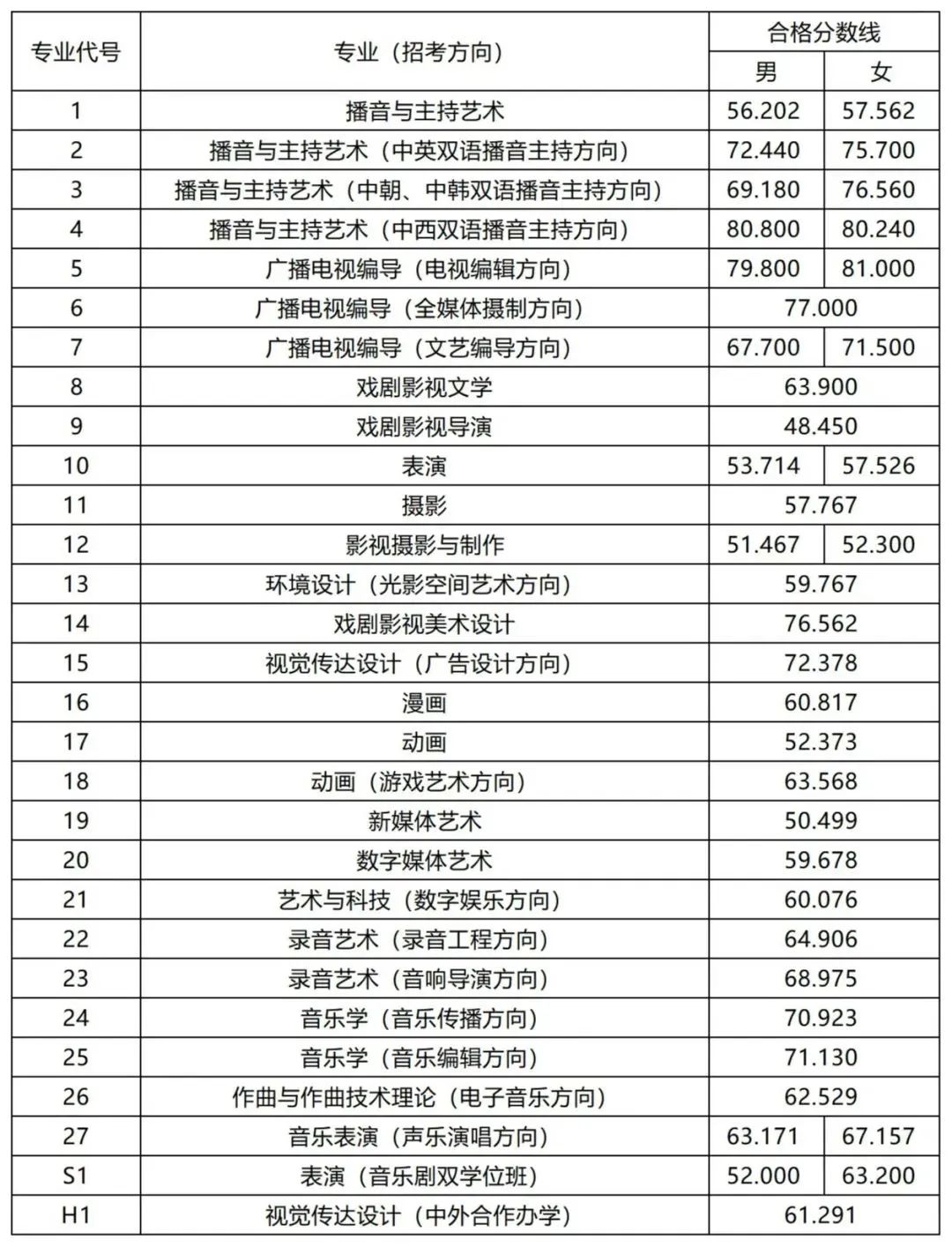 2.2023年中传的校考合格线及录取原则