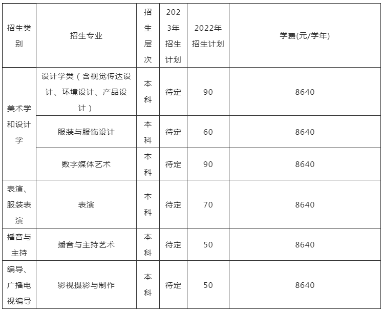 2023年我院艺术类招收书法学、环境设计、动画、视觉传达设计、中国画、播音与主持艺术六个本科专业。