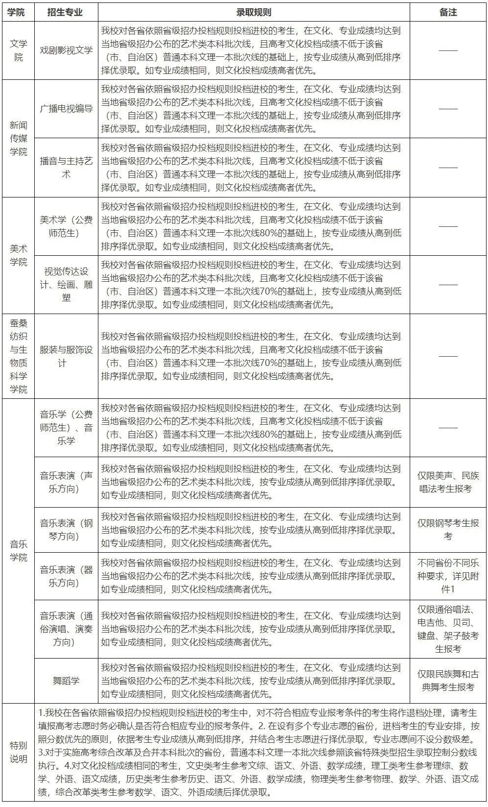 学院艺术类专业录取规则为:按专业课成绩从高到低择优录取;专业课成绩相同时,按照文化课成绩从高到低择优录取;专业课和文化课成绩均相同时,按照考生位次高低顺序择优录取。