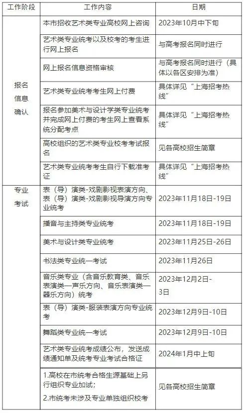 2024年上海市普通高校艺术类专业报名考试工作日程表