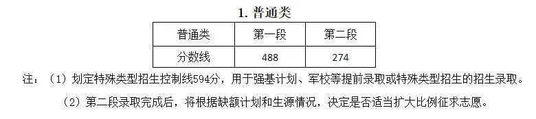 2023年浙江省普通高校招生各类别分数线