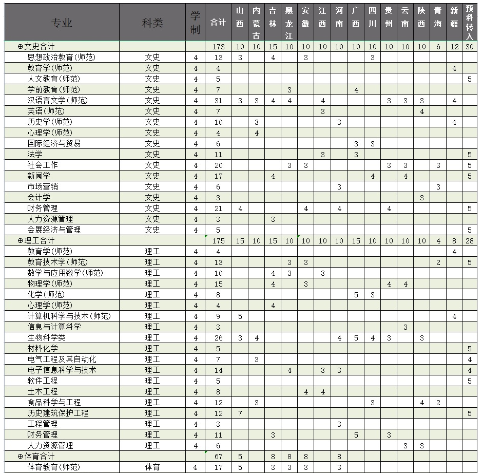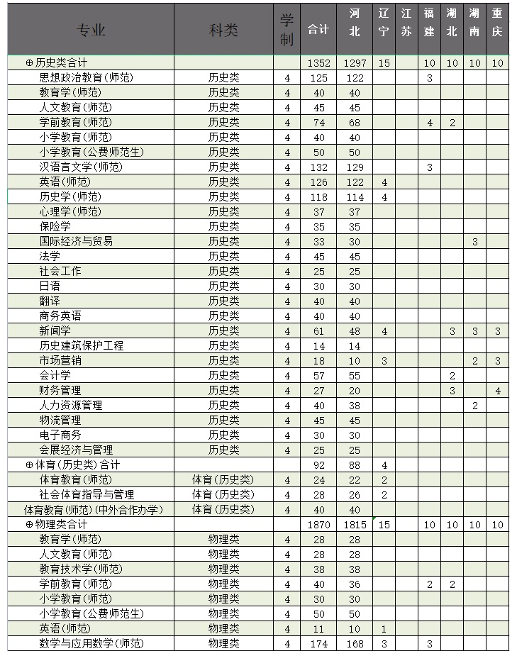 2023年廊坊师范学院非高考改革省份及预科转入计划表(本科)