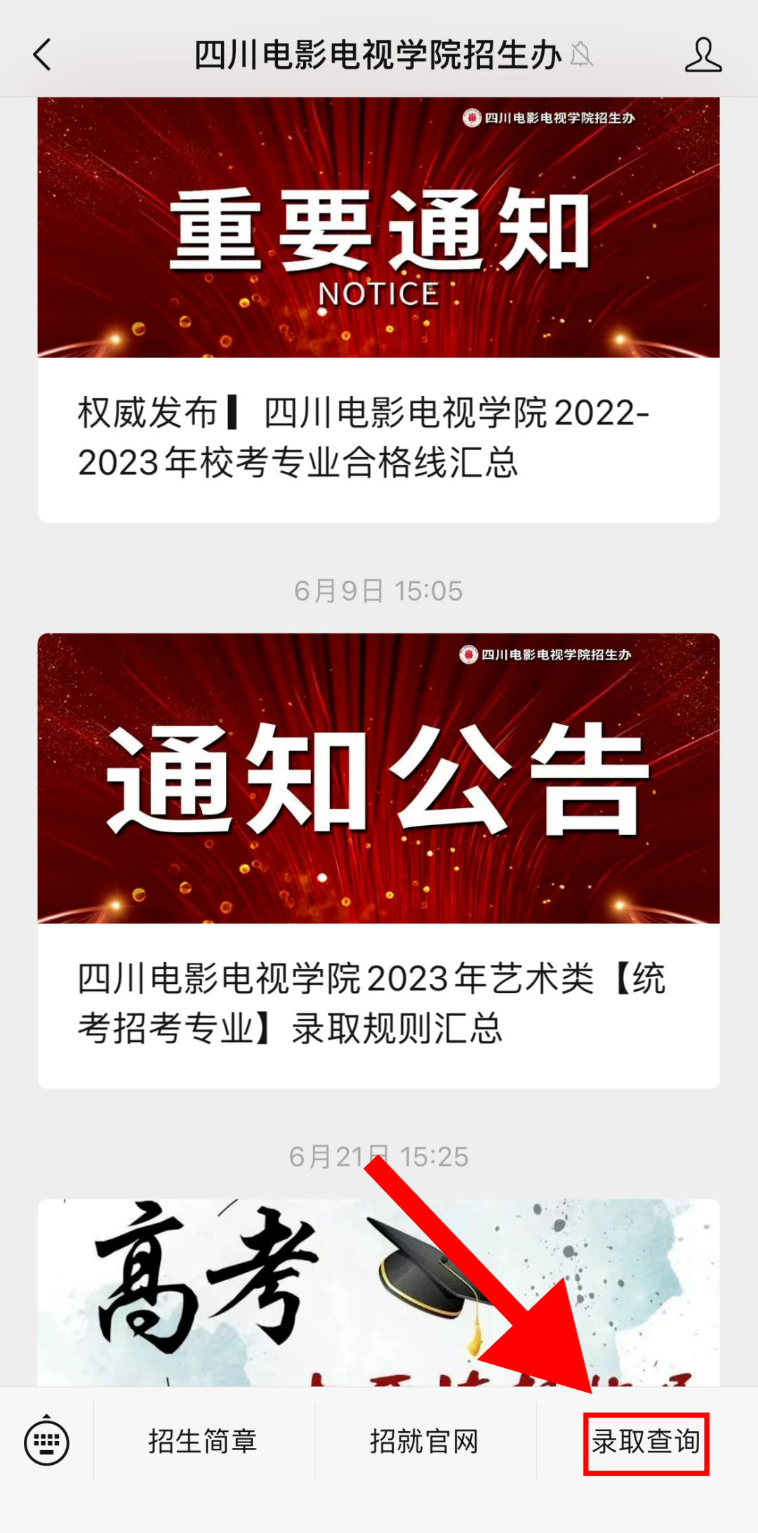 请关注【四川电影电视学院招生办】微信公众号查询↓