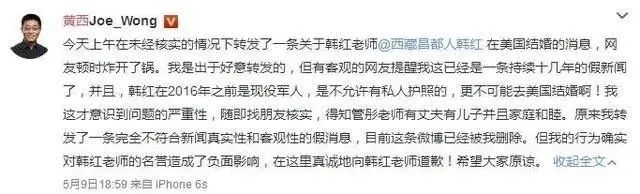 黄西就发微博道歉