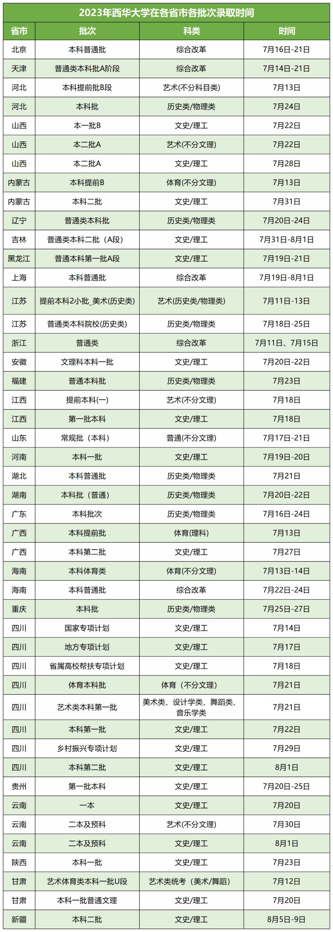 本科批平行:7月20日至8月2日