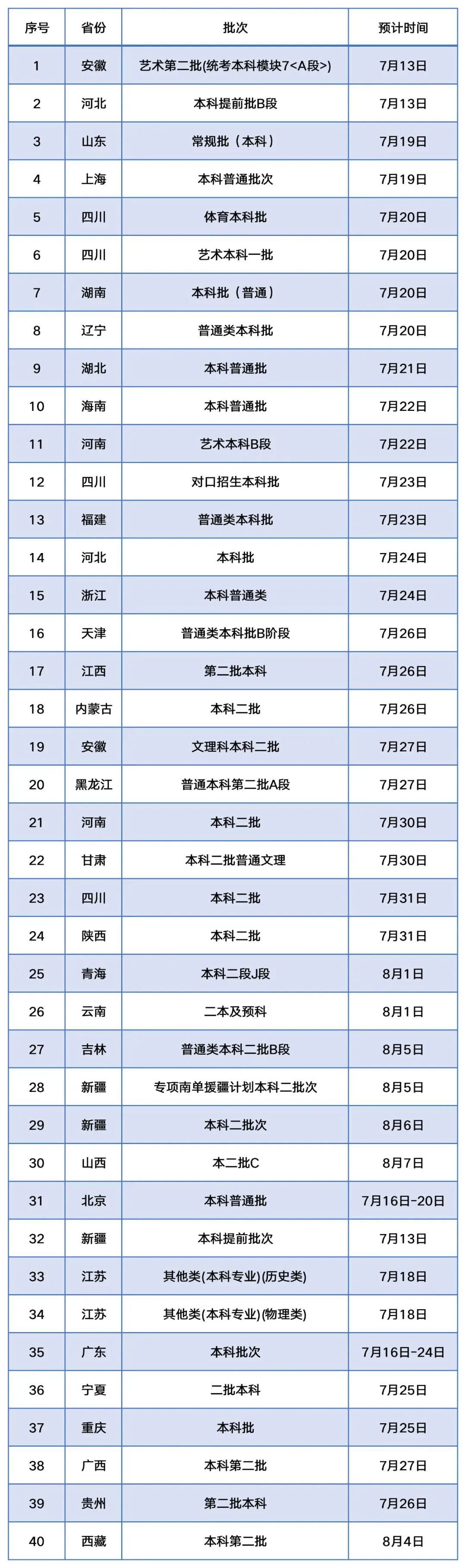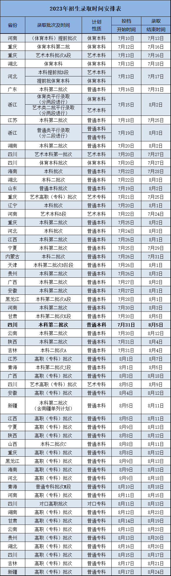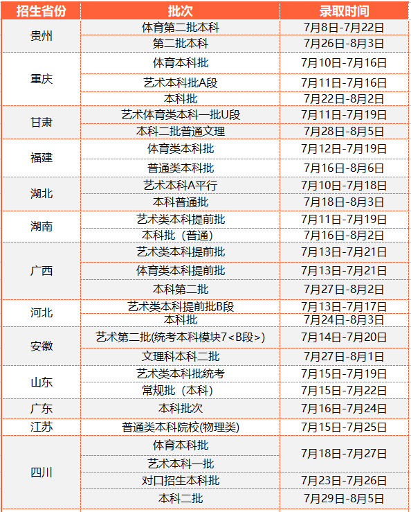 本科二批:7月26日至8月3日