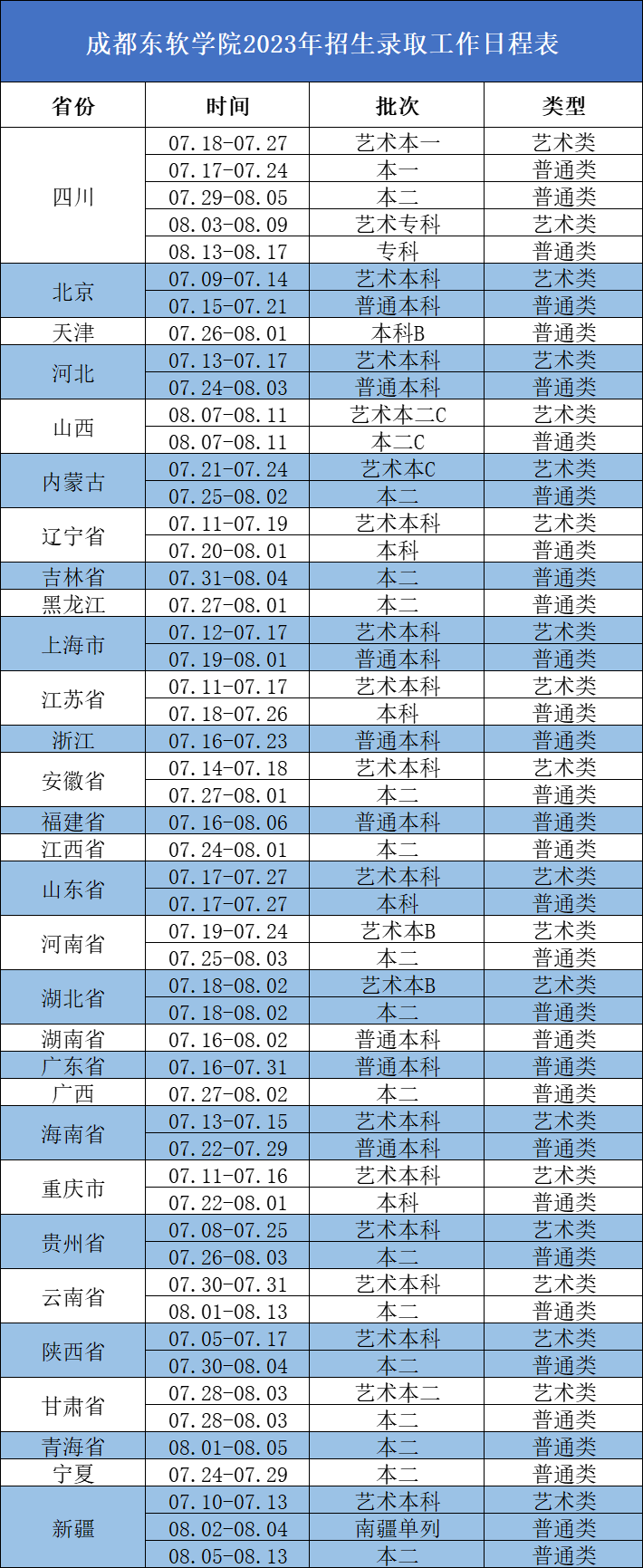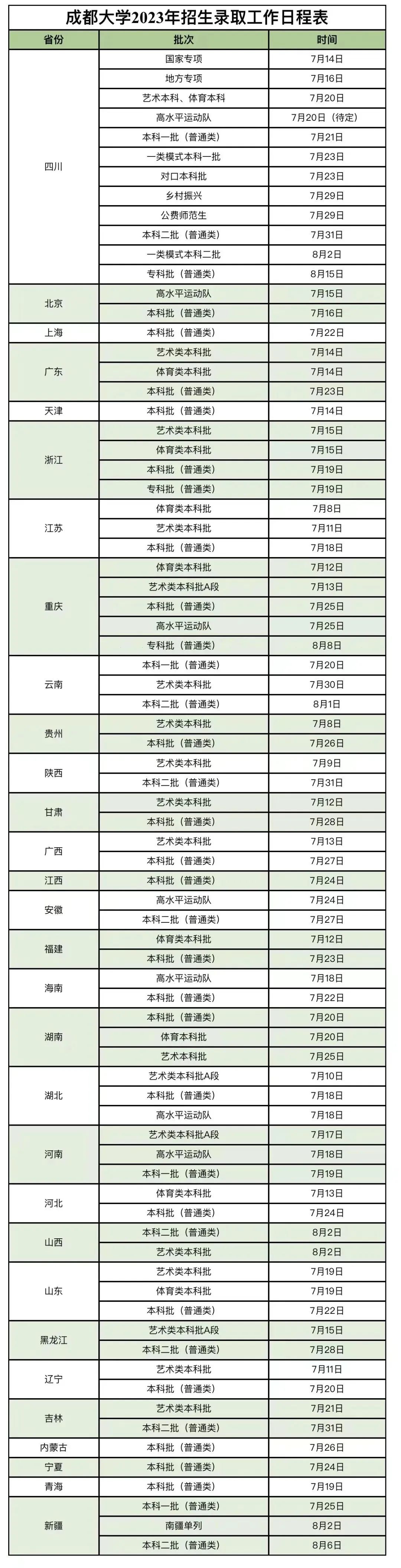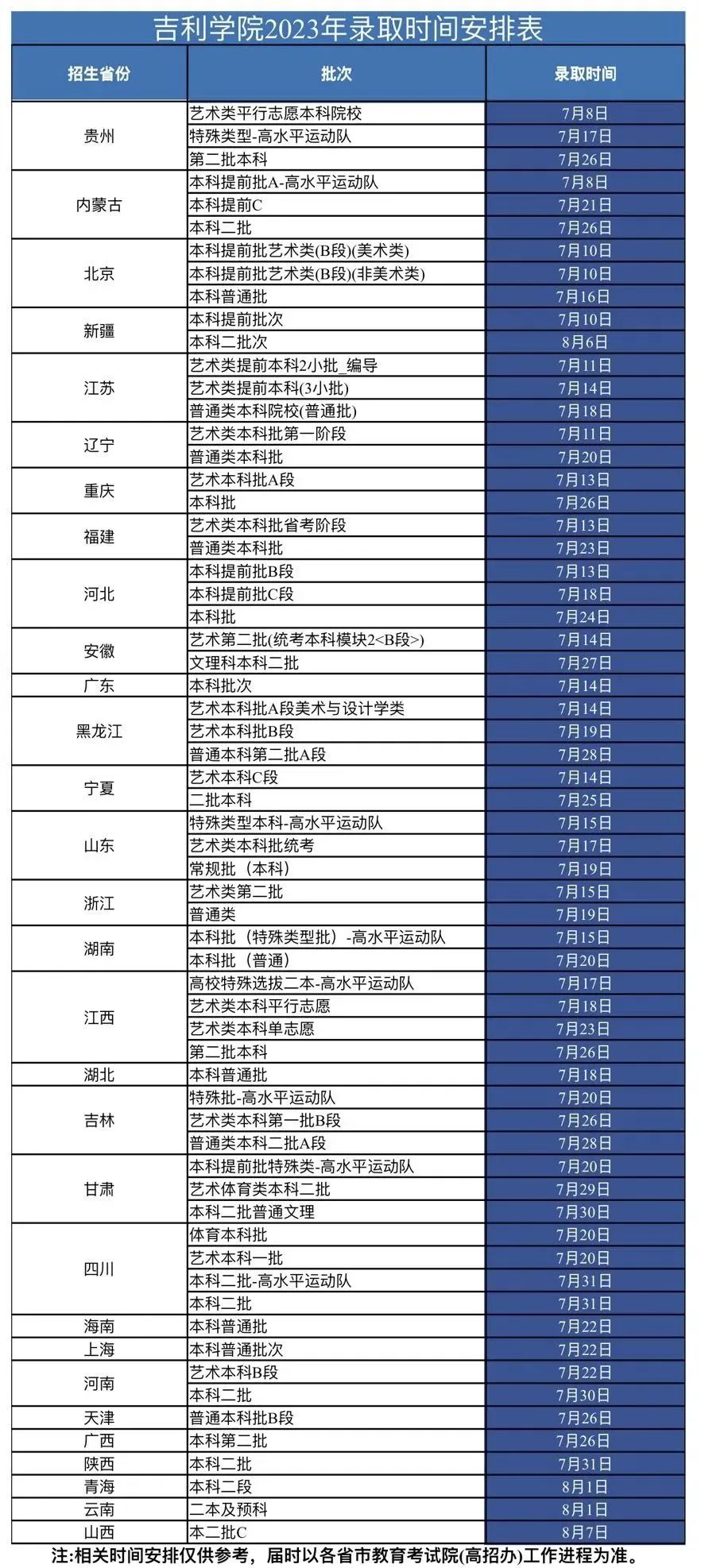 其他省份录取时间安排表