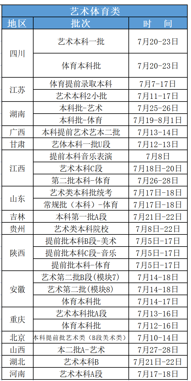 艺术本科批省考阶段
