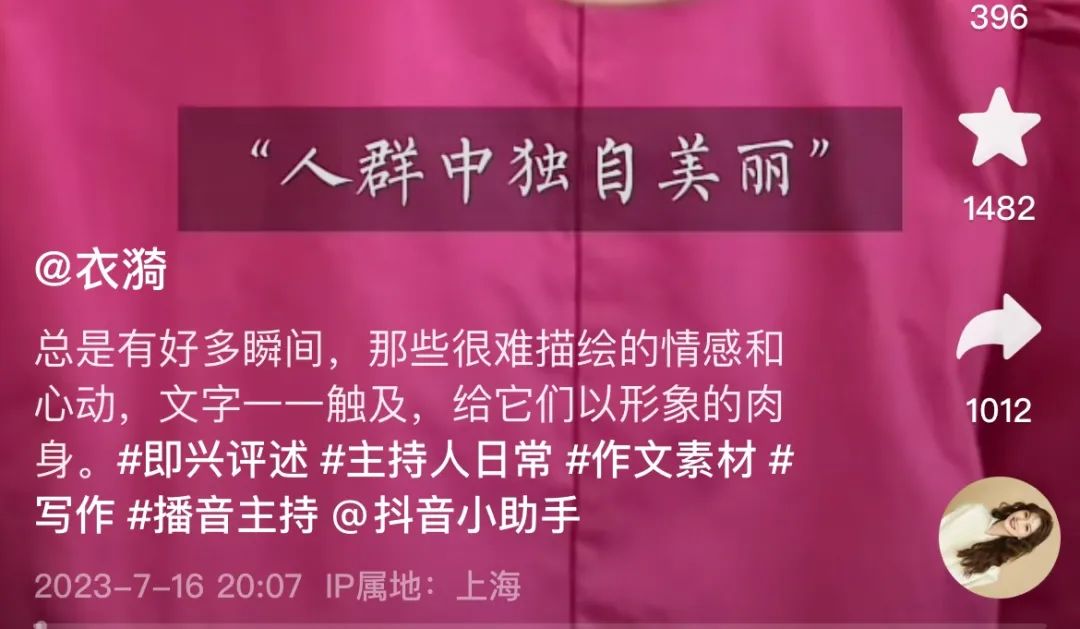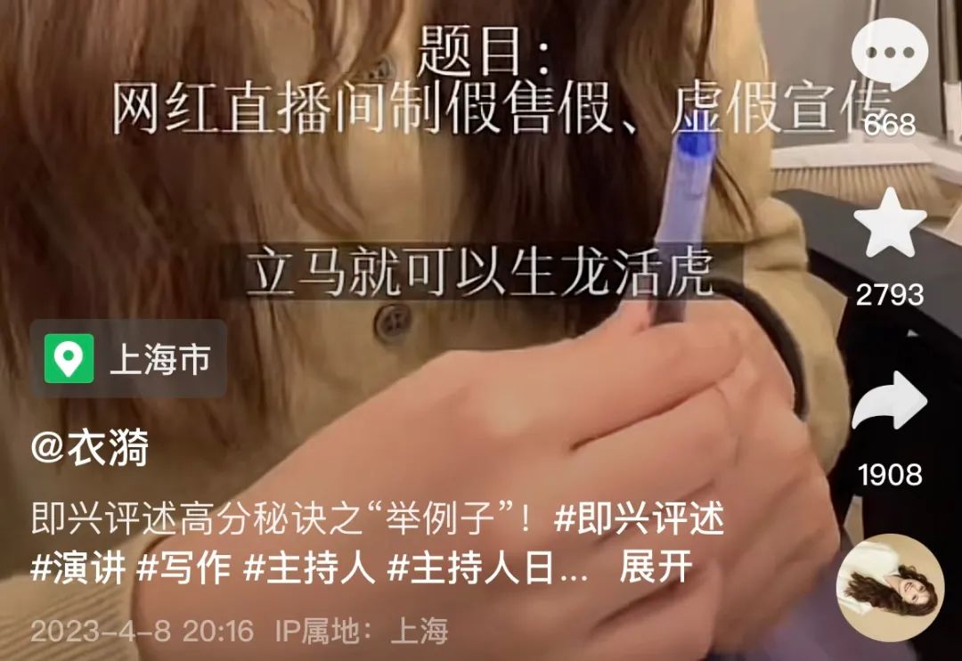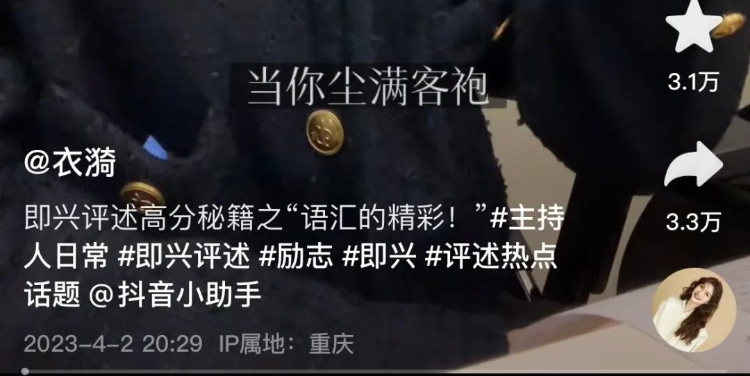 从她的自媒体短视频中可以看出,对于即兴评述板块她的实践经验丰富。