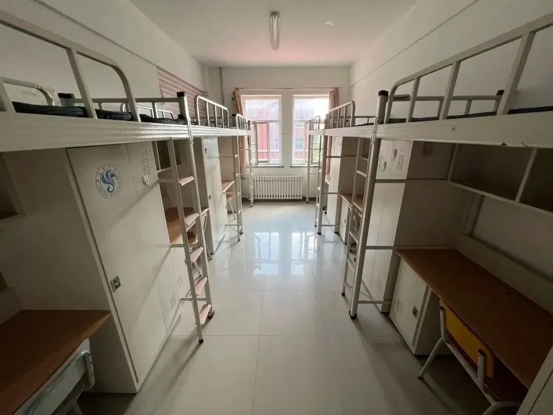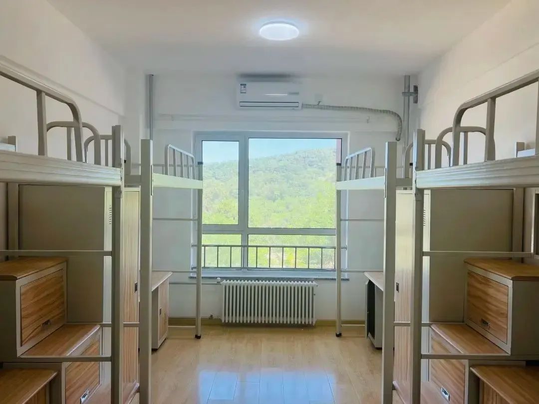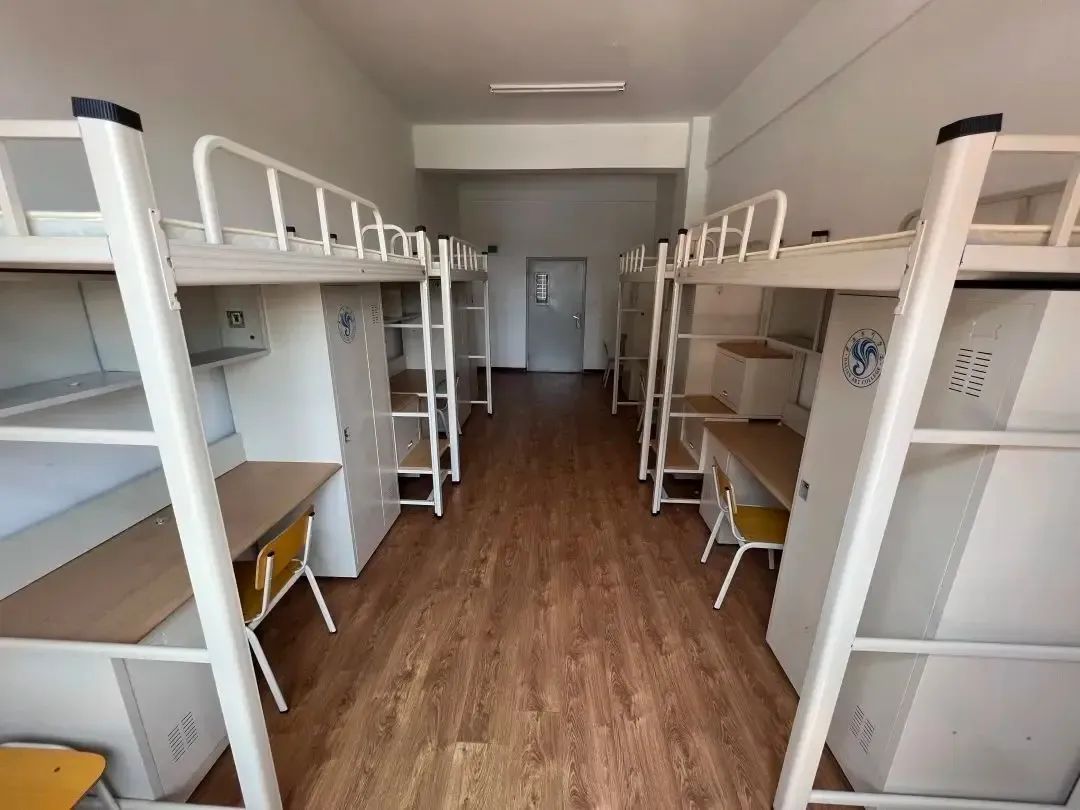 层楼配有公用洗漱区域;标准四人间配套上床下桌组合式家具,室内木质地板通铺,每层楼配有公用洗