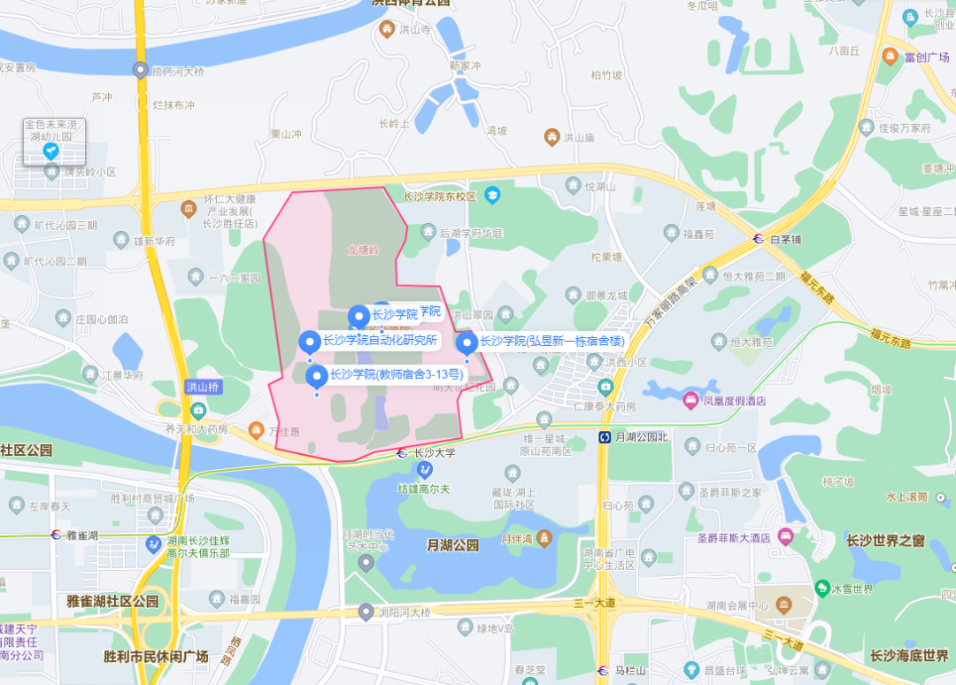 A:长大位于洪山旅游区,具体地址为长沙市开福区洪山路98号,校园风景优美,景色宜人,周边交通设