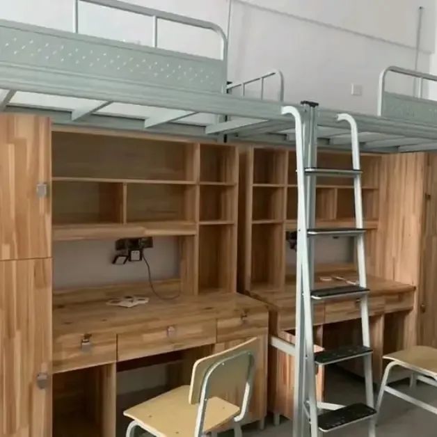 知行园校区有四人寝和八人寝,室内布局主要为上床下桌,床铺和写字台连为一体,或者书桌和床铺分