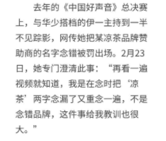 伊一还被网友质疑念错冠名商