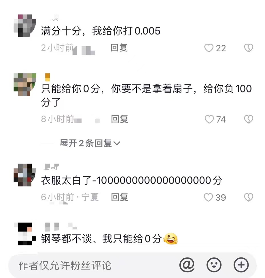 “满分十分,我给你打0.005。”“钢琴都不谈,我只能给0分“