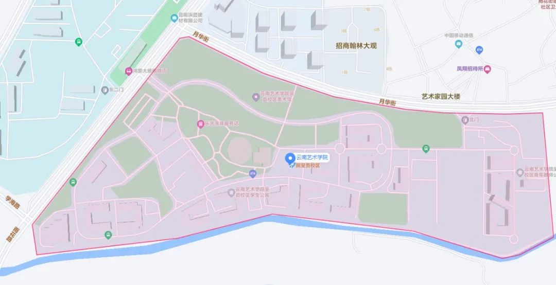 A:云艺毗邻昆明市呈贡区政府、昆明市呈贡区人民医院等重要机构。学校北侧是昆明市呈贡区文化广场,南侧是昆明市呈贡区体育馆,西侧是昆明市呈贡区图书馆,东侧是昆明市呈贡区龙城公园,周边还有公园、广场等地方进行休闲娱乐活动。