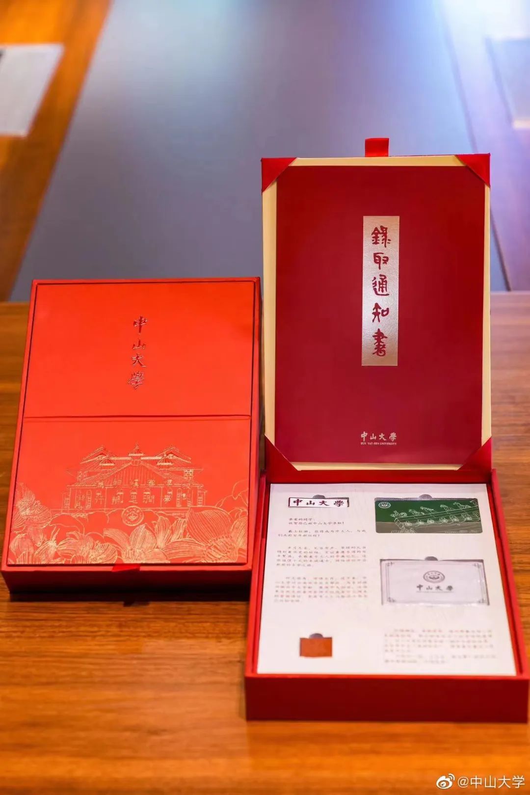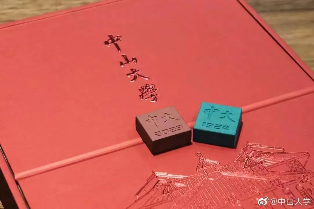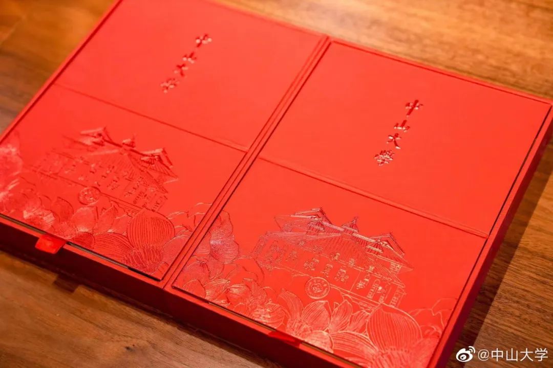 中山大学2023年本科录取通知书套装以状元红为整体色调,录取通知书的背后,印有儒家经书《礼·中庸》选段“博学之、审问之、慎思之、明辨之、笃行之”,这也正是中山大学校训的出处,激励着每一名中大学子上下求索。