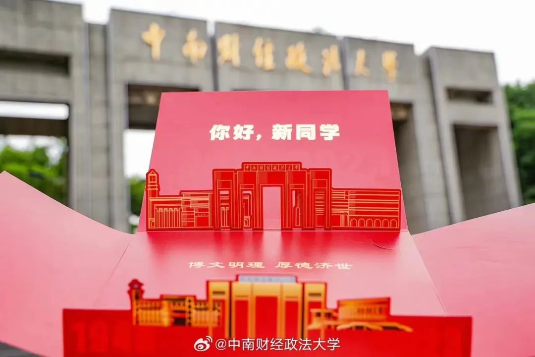 今年是中南财经政法大学建校75周年,录取通知书邮政文件袋增加75周年暗纹,通知书外包装采用对开翻折式设计,正面印有75周年的印章和金色校徽校训。打开录取通知书,“1948”和“2023”的暗纹设计与75周年呼应,双层立体设计的中南大标志性建筑北门、文波楼、艺体中心、文澜楼立体展现,通知书内页同样也添加中南楼、文津楼、九孔桥等标志性建筑图案以及75周年标志。