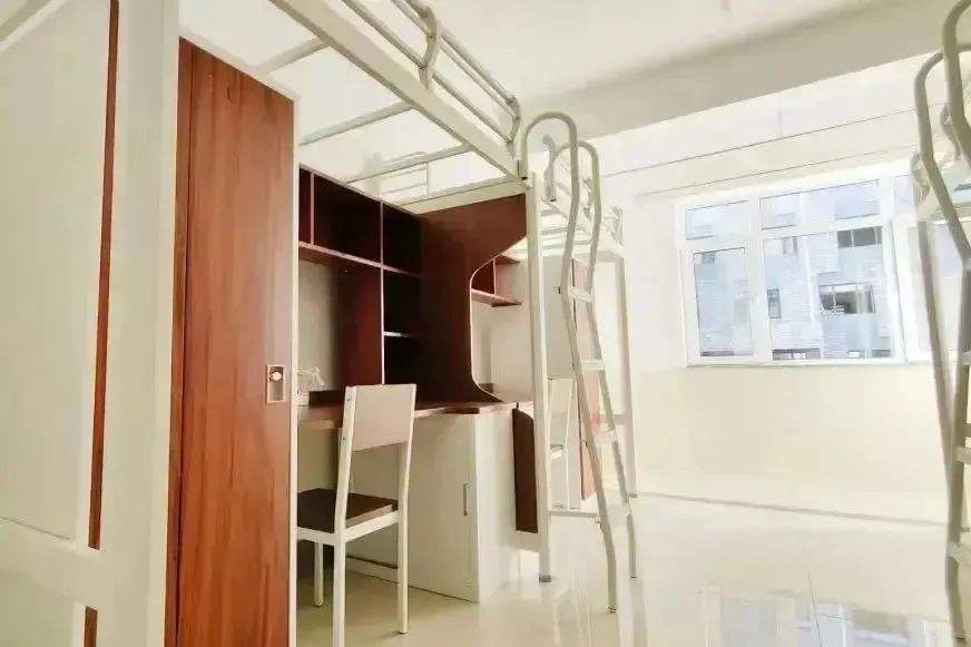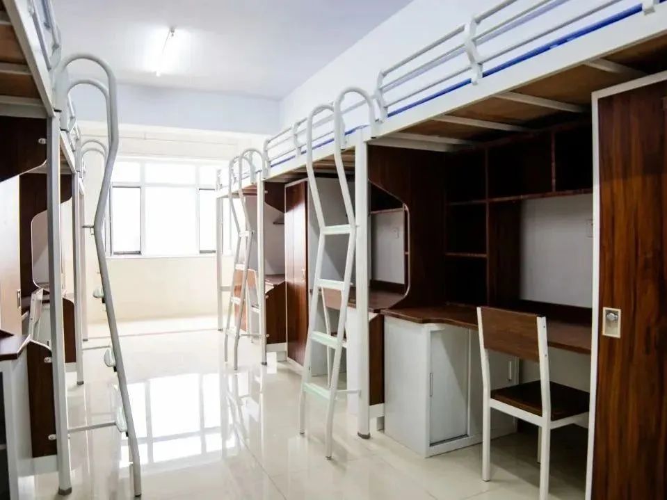 A:北校区是全新的学生宿舍,设有2、3、4、6人间公寓,四六人间是上床下桌,二三人间是平铺单床,有独立衣柜,超大书桌。宿舍内没有空调以及独立卫浴,但是每层都有公共洗漱间到中本,内设热水器洗衣机。