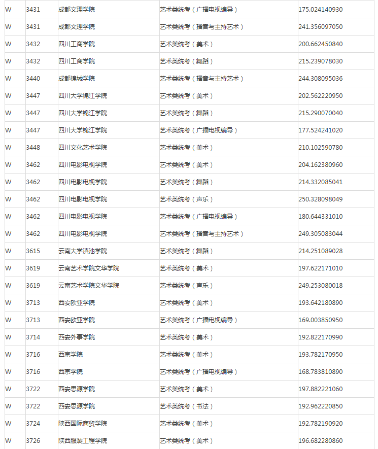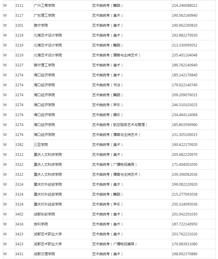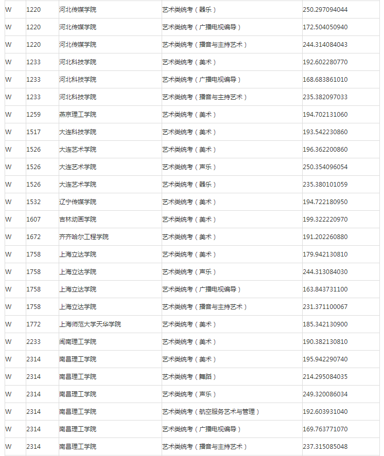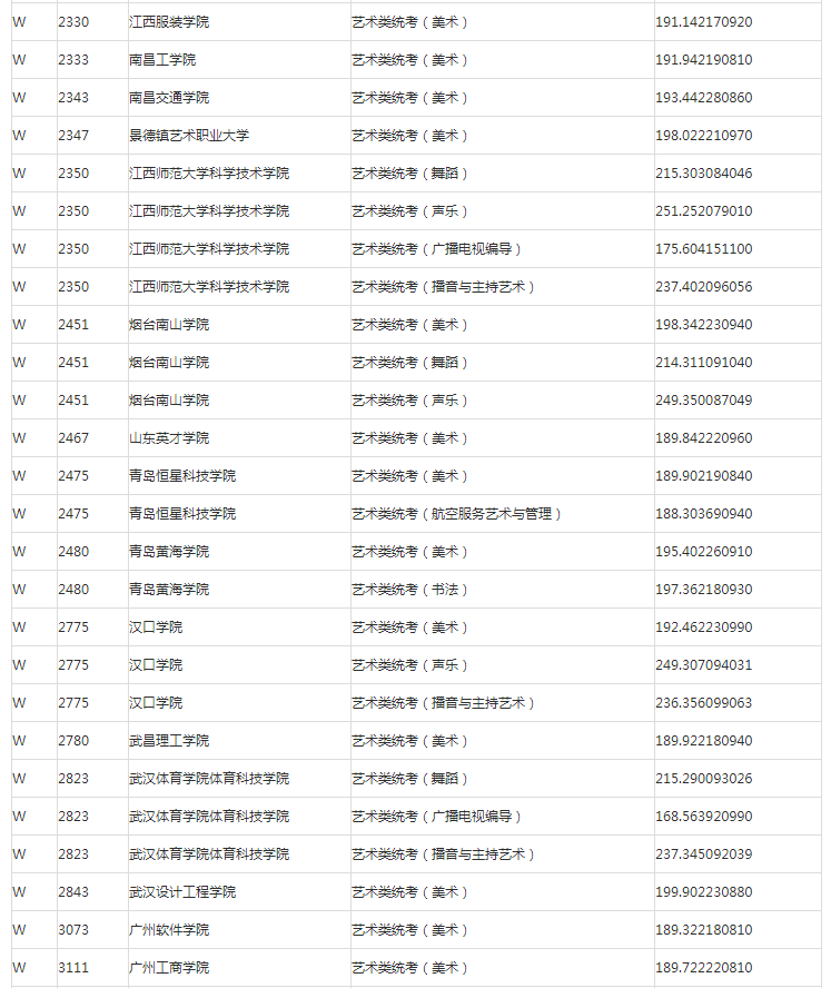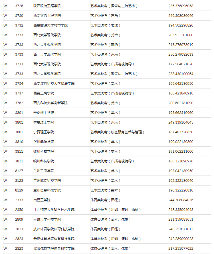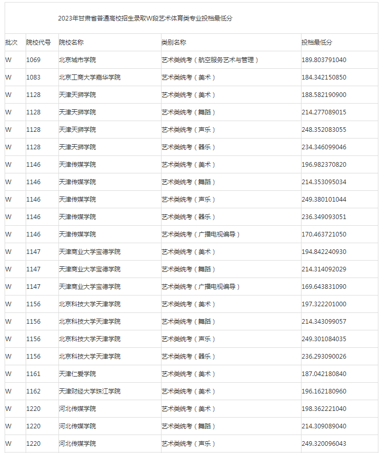 甘肃2023年普高艺术体育类专业W段投档最低分公布